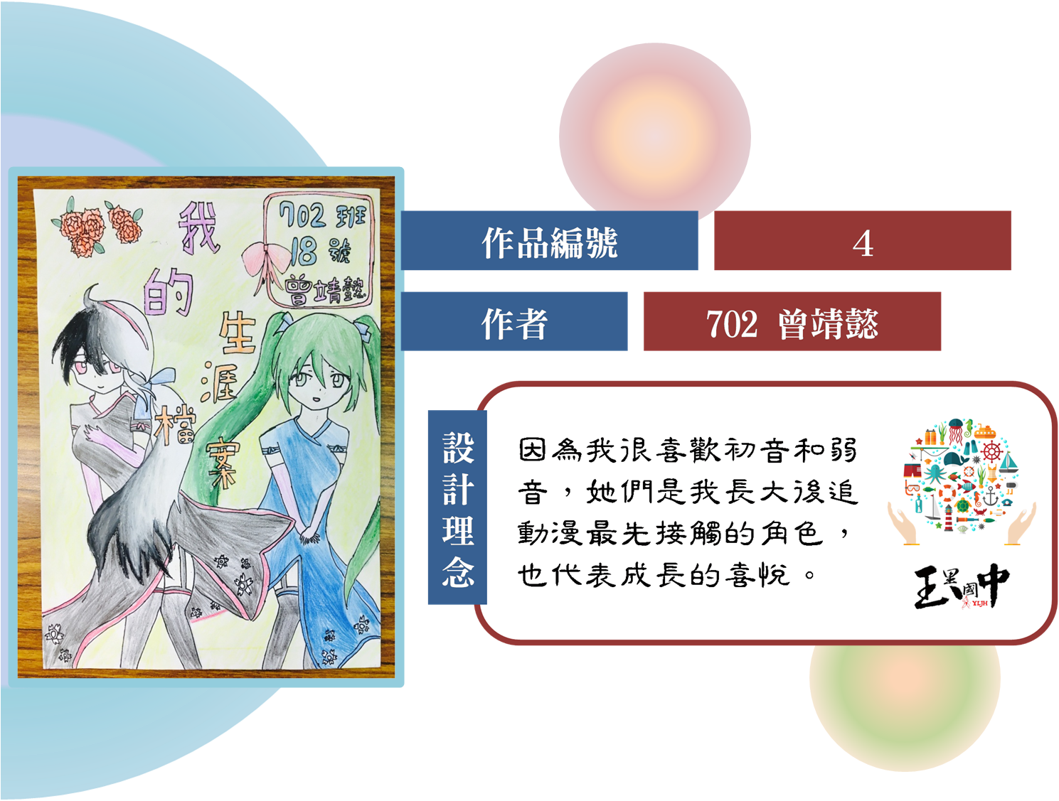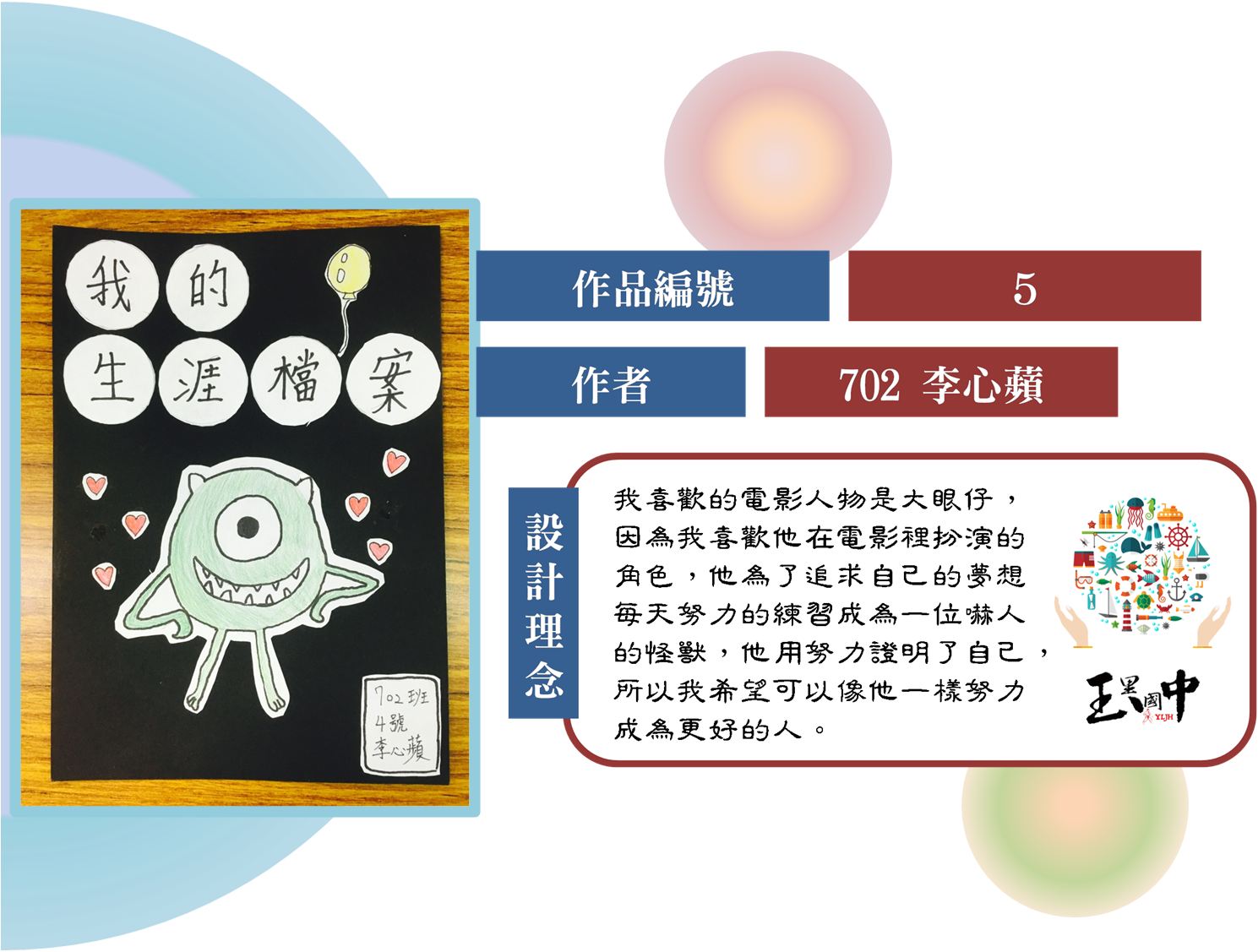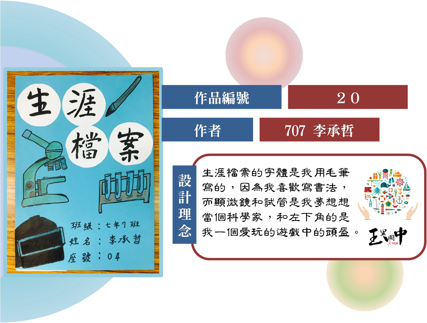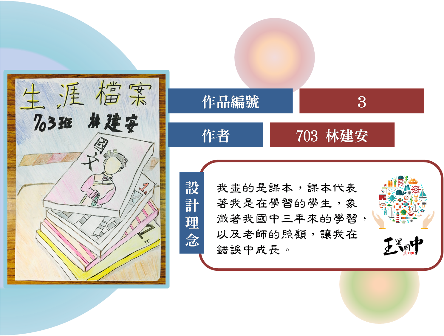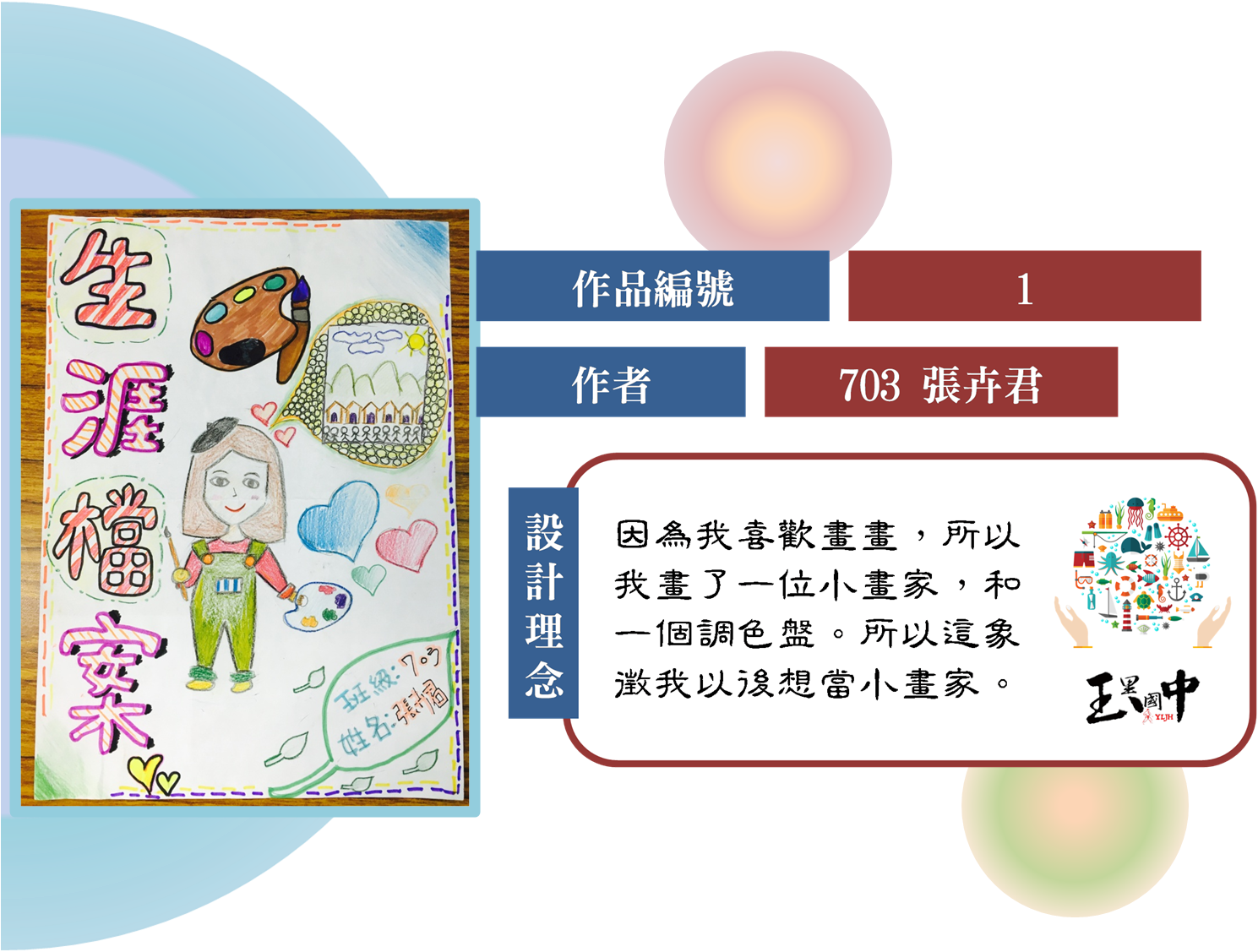 活動說明:為鼓勵七年級同學在生涯檔案封面的製作,作品將由七年級各班同學票選出前三佳作參與全校性觀摩,每位教職員以三票為限(一票等同於學生三票計算),結果將合併同學們的選票計算並公開擇優表揚,也歡迎各位師長及同仁至觀摩地點參觀。