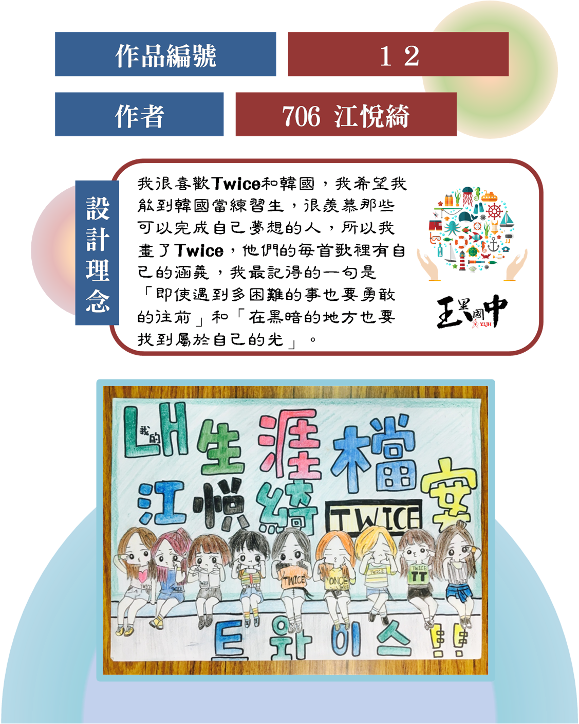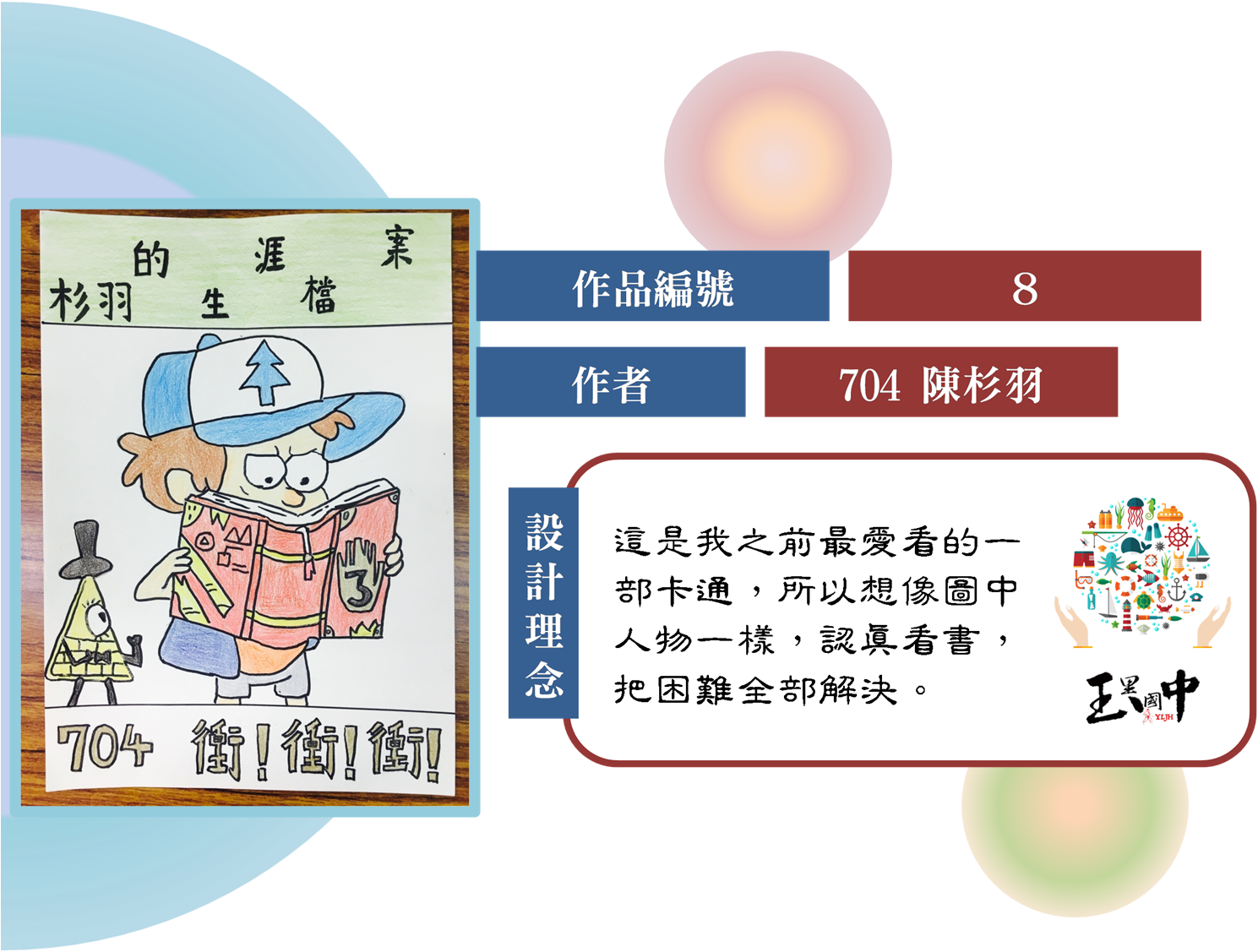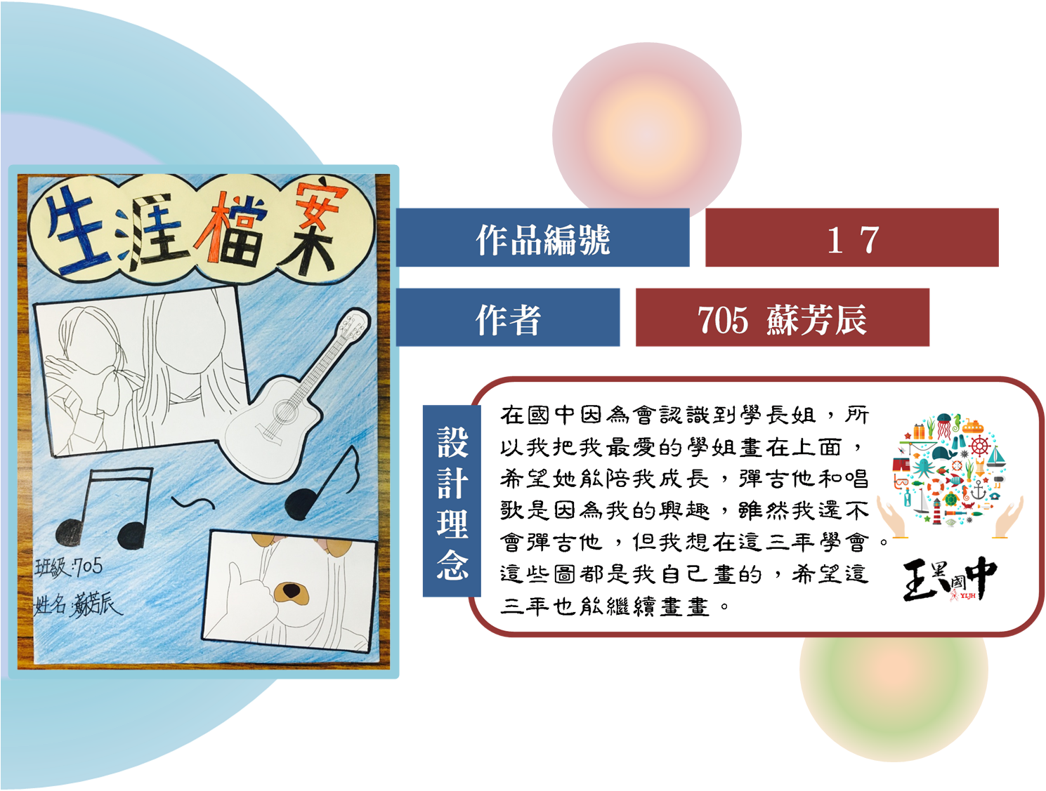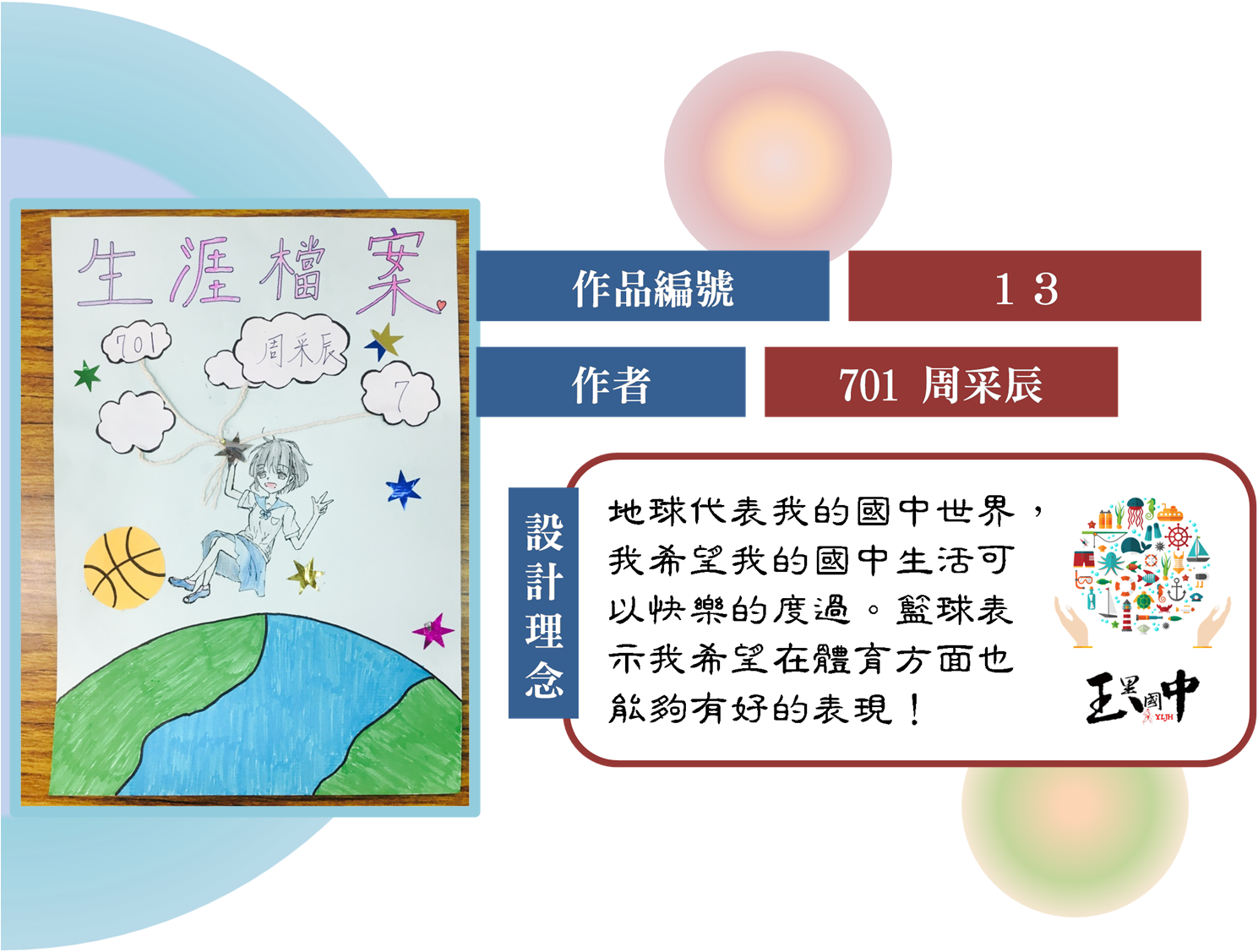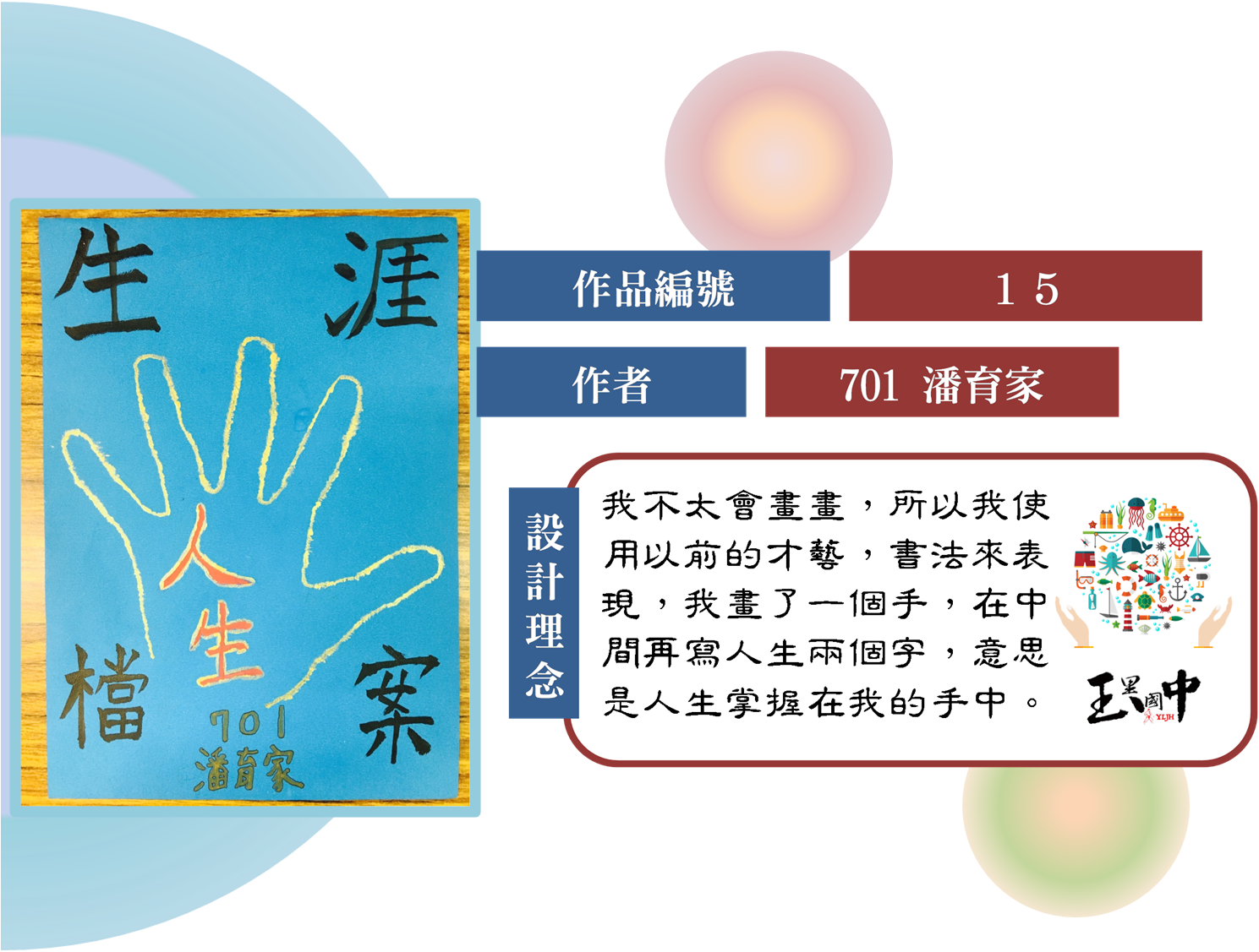 活動說明:為鼓勵七年級同學在生涯檔案封面的製作,作品將由七年級各班同學票選出前三佳作參與全校性觀摩,每位教職員以三票為限(一票等同於學生三票計算),結果將合併同學們的選票計算並公開擇優表揚,也歡迎各位師長及同仁至觀摩地點參觀。
