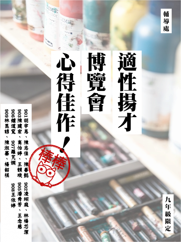 恭喜以上得獎同學,獲得榮譽卡一張,輔導處會擇期進行頒獎!