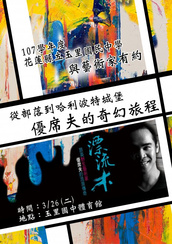 藝術家兼作家 3/26日 於玉里國中體育館對全校學生 舉辦講座