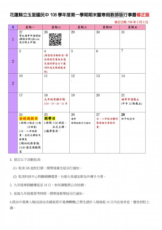 1) 修正版教師版花蓮縣立玉里國民中108學年度第一學期期末暨寒假行事曆(教師新版).pdf