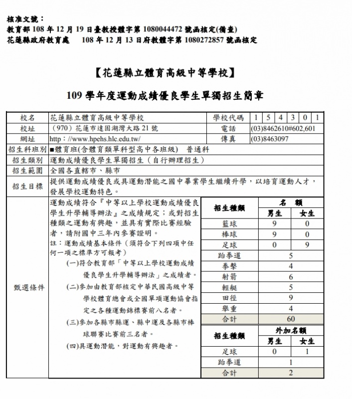 1) 109學年度運動成績優良學生單獨招生簡章(含教育部文號)1081225.pdf