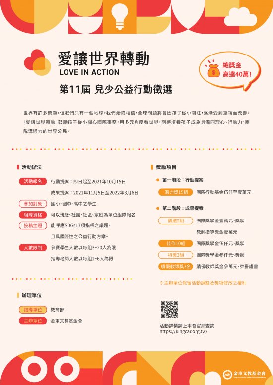 一、「愛讓世界轉動 兒少公益行動」徵選資訊