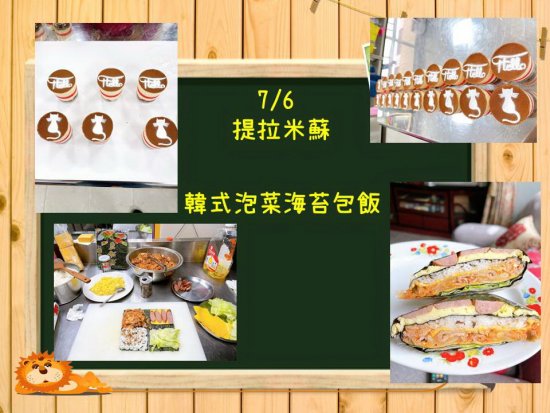 ●7/6(三) 美食小當家(上午-提拉米蘇、下午-韓式泡菜海苔包飯+楊枝甘露)