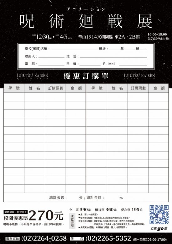 (一) 展覽時間:111年12月30日(五)~112年4月5日(三),除夕休館。營業時間:10:00~18:00(17:30停止售票及入場)