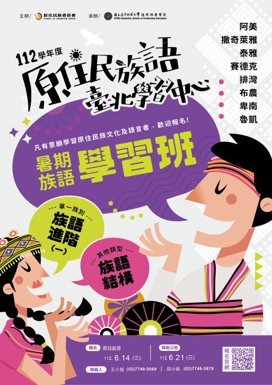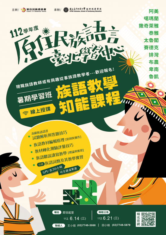 112學年度暑期「族語學習班」及「教學知能課程學習班」