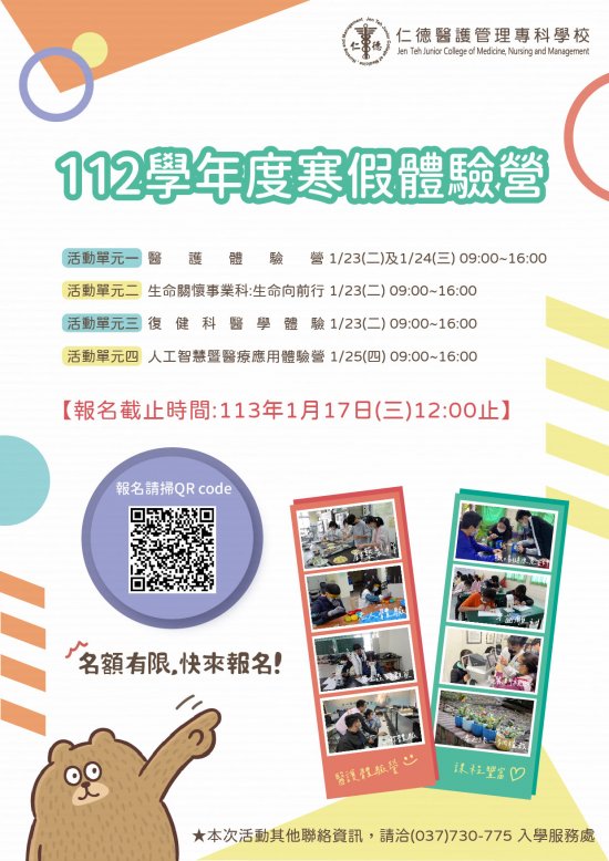 二、其他聯絡資訊,請洽(037)730775入學服務處。