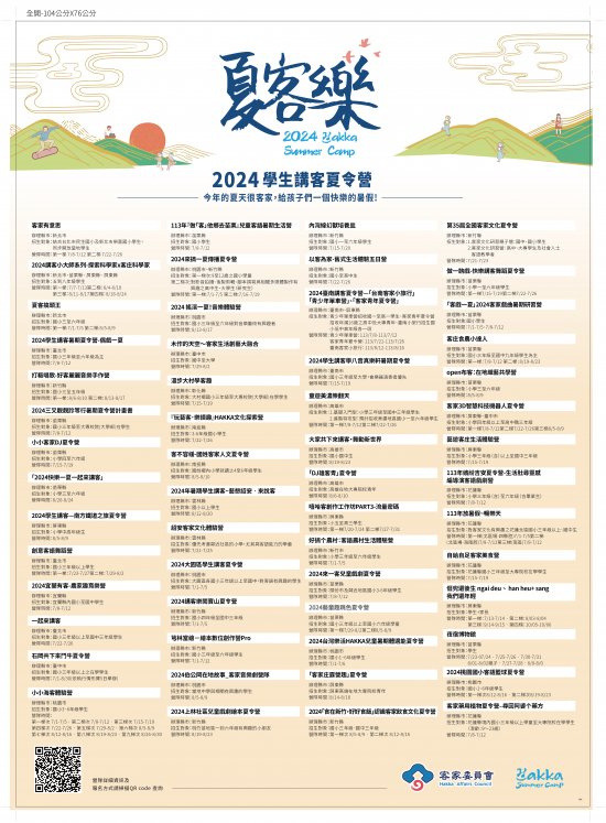 檢附旨揭活動一覽表1份供參,相關訊息同步公告於本案網頁(https://hakkasummercamp.hakka.gov.tw/)及客家委員會官方網站(http://http://www.hakka.gov.tw),歡迎上網瀏覽。