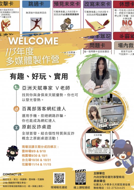 113年度多媒體製作營,請同學踴躍參加。