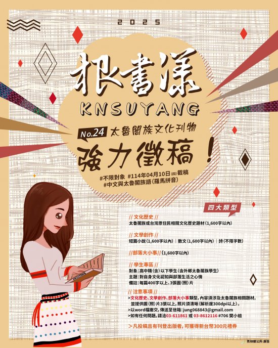 3、 新詩(不限文字及圖(照)片數量,內容須與太魯閣族相關之題材)。