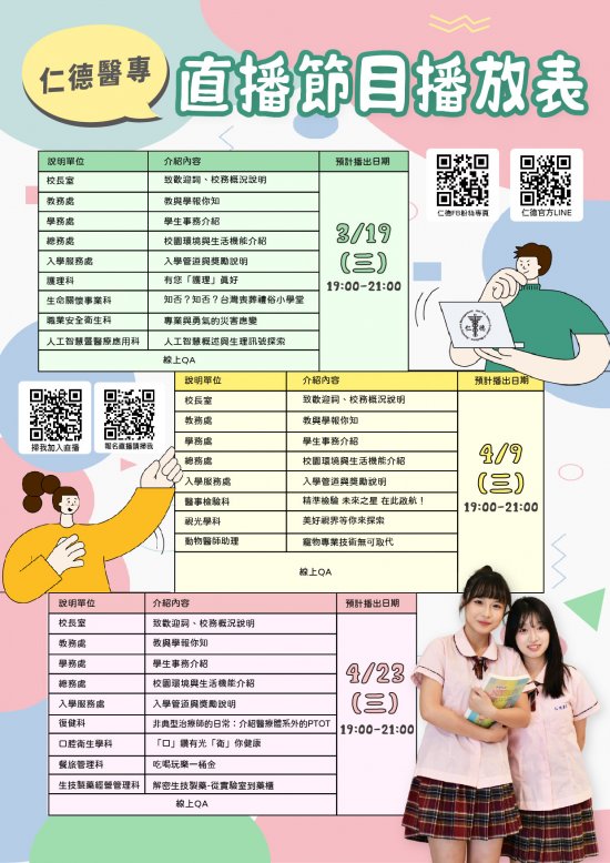 3/19(三)、4/9(三)及4/23(三) 晚上19:00~21:00特別舉辦三場線上說明會