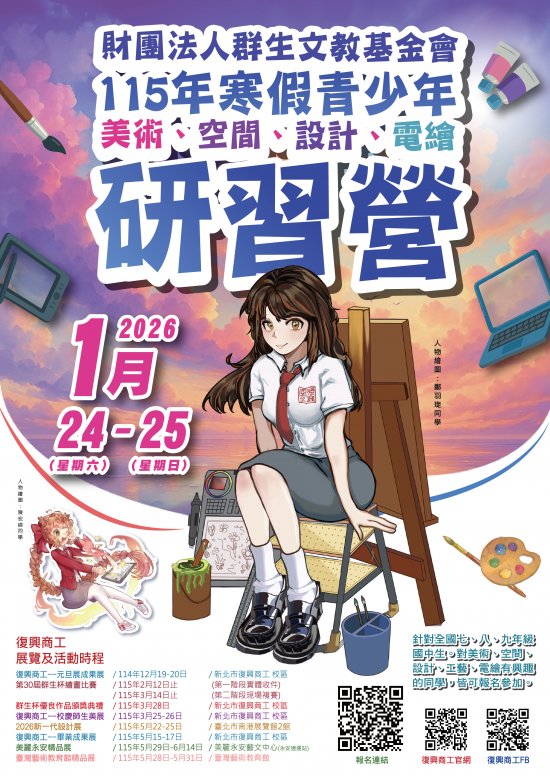 三、 參加對象:凡全國國中七、八、九年級,對美術、設計、工藝、電腦有興趣者,皆可報名參加,有報名學生之國中老師,可免費參加研習營(各班別限5名老師,額滿為止)。