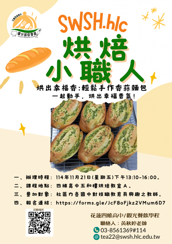 (六) 聯絡人:觀光餐飲學程黃秋婷老師,電話:03-8561369#514