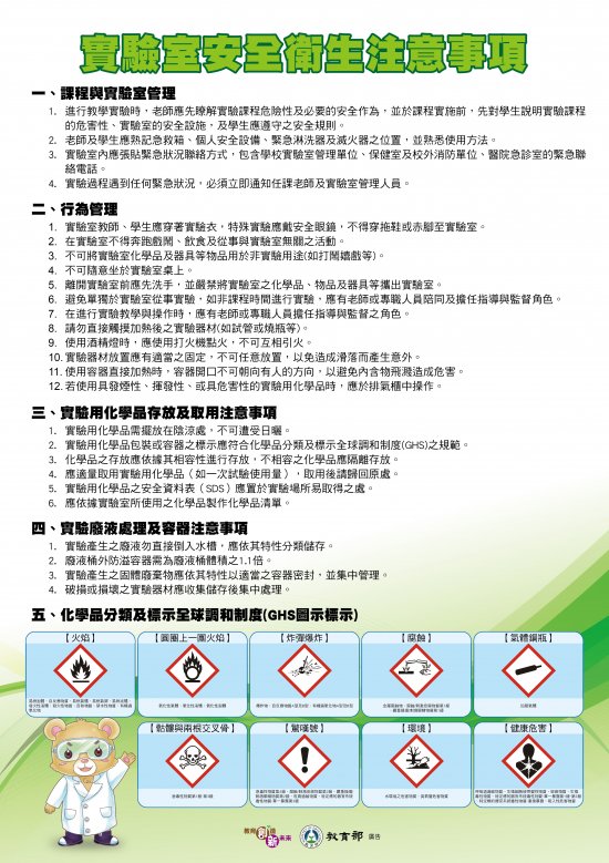 三、上課期間各實驗室之安全與清潔由任課教師與上課學生共同維護。